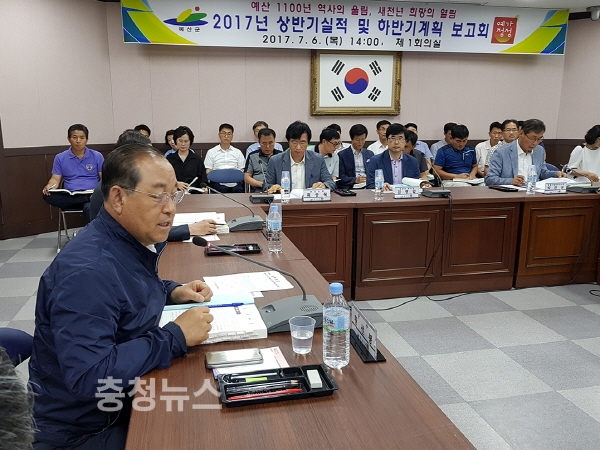충남 예산군은 군청 제1회의실에서 ‘2017년도 상반기 추진실적 및 하반기 계획 업무 보고회’를 개최하고 민선 6기 3주년 군정 방향 및 하반기 운영 방향을 논의했다고 6일 밝혔다.