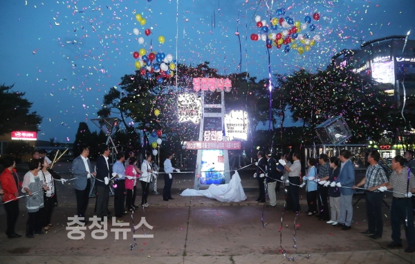 충남 당진항 서부두 매립지를 되찾기 위한 당진시민들의 염원이 담긴 상징조형물이 지난 6일 밤부터 당진버스터미널 광장에서 불을 밝히기 시작했다.