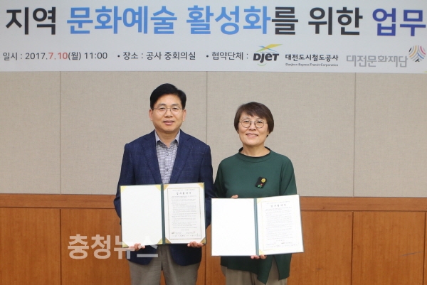 대전도시철도공사(사장 김민기)는 10일 대전문화재단(이사장 이춘아)과 지역 문화예술 활성화를 위한 업무협약을 체결했다.