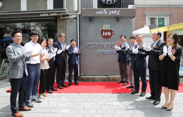 이날 권선택 시장, 시의회 부의장, 충남대총장 등 기관·단체장과 일자리카페 꿈터 공간을 제공한 임호영 카이로스 카페대표, 김성태 유엔아이 대표, 정미숙 커피니 대표가 참석한 가운데 진행됐다.