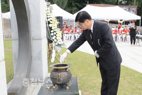 대한민국무공수훈자회 세종시지회(지회장 임봉영)가 주관하는 이날 추모제에는 이춘희 세종시장과 패트릭 G. 셕 美제2전투항공여단 대대장, 채순희 충남동부보훈지청장, 교육감, 육군방공학교장, 경찰서장, 보훈단체장 등 400여 명이 참석했다.