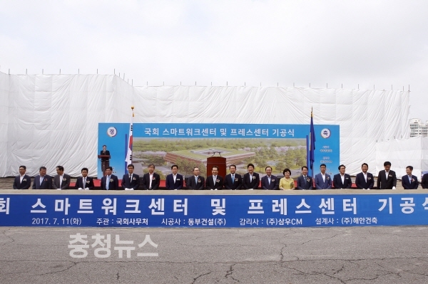 정 의장은 기념사에서 “국회 스마트워크센터 및 프레스센터의 건립은 국회와 정부간 업무 효율화뿐만 아니라 열악한 취재환경 개선을 통해 대한민국 국회를 한 단계 격상시키고, 스마트 국회로 가는 발판을 구축하는 것”이라고 말했다.