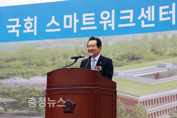 정세균 국회의장은 11일 오전 10시 국회 스마트워크센터 및 프레스센터 기공식 행사에 참석했다.