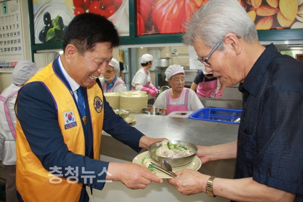 국제라이온스협회 356-B지구 김동원 총재는 지난 11일 유성구 노인복지관에서 대전승화라이온스클럽(회장 김영직)에서 초복을 맞이하여 전개한 지역어르신 초청 500명 삼계탕 대접봉사에 참석하여 효봉사를 펼쳤다.