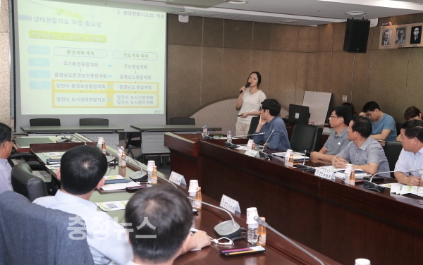 충남 당진시가 지난해 7월부터 도시생태현황지도(비오톱 지도)를 구축하고 있는 가운데 1년 동안의 연구결과를 공유하는 보고회를 14일 김홍장 시장 주재로 가졌다.