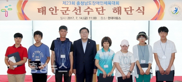 충남 태안군이 14일 태안읍 현대더링스CC에서 제23회 충청남도장애인체육대회 선수단 해단식을 갖고 그동안의 노고를 치하했다.
