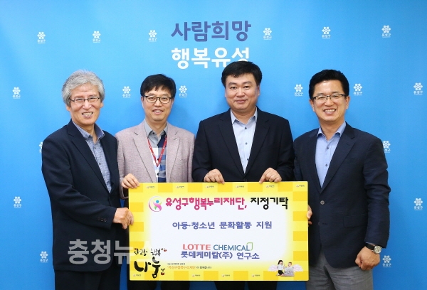 대전 유성구(구청장 허태정)는 17일 롯데케미칼(주)연구소(연구소장 강경보)가 행복누리재단에 성금 300만원과 후원물품(PC) 200만원 상당을 기탁했다고 밝혔다.