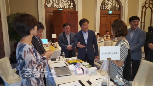 황명선 시장은 18일 인도네시아 말랑시와의 우호교류 협정 일정에 앞서 17일 1일차 일정에 싱가폴 현지에 직접 방문해 사절단을 격려하고 현지바이어들에게 논산의 우수한 중소기업을 설명하고 설득하는 등 수출 계약 성과를 높이기 위해 적극적인 마케팅을 펼쳤다.