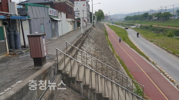 대전천을 따라 펼쳐진 해당 도로는 보행로가 따로 없고 도로 폭이 4m 정도로 비좁은 관계로 보행자들이 차량을 피하기 위해 하천 경계석 위로 통행하는 등 추락사고의 위험이 상존해 있었다.