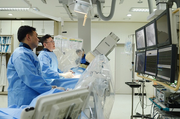 배장호 심혈관센터장과 송인걸 부정맥 전문의는 “심장은 항상 뛰기 때문에 고정된 영상정보만으로 치료하기 어려운데, 3차원으로 구현하면 정확한 치료를 시행할 수 있어 부정맥 환자 치료에 큰 도움이 될 것”이라고 입을 모았다.