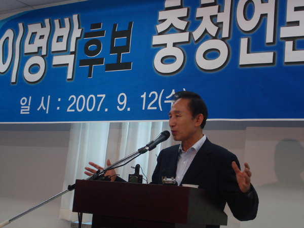 한나라당 이명박 대선후보는 충청권 선거대책위원장은 누구를 마음에 두고 있냐? 본지의 질문에 "가장 능력 있고 훌륭한 분을 모시겠다! "고 말해 누굴을 선택할지 주목된다.