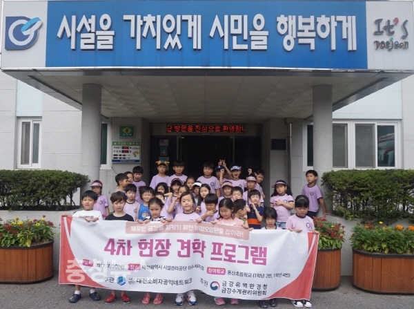 (사)대전소비자공익네트워크(회장 도정자)는 금강유역환경청(청장 이경용)금강수계관리위원회 후원으로 19일과 20일 양일간 용산초등학교 어린이와 교사를 포함한 80여명과 원촌동에 위치한 대전광역시 시설관리공단 하수처리장을 견학했다.