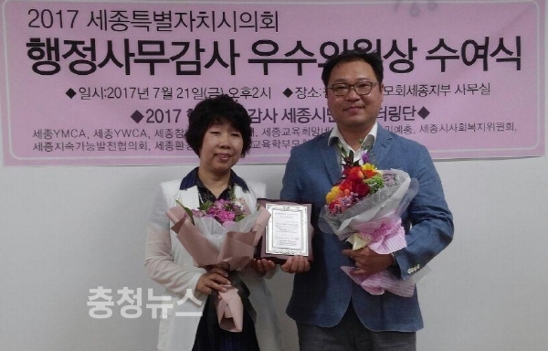 세종시의회 김정봉 의원과 안찬영 의원이 2017 행정사무감사 시민 모니터링단(이하 ‘모니터링단’)으로부터 우수의원상을 수상했다.