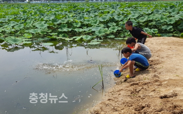 보통 지역 축제에서 많이 열리는 이벤트 중 하나가 물고기 잡기 체험인데, 지난 22일과 23일 이틀 간 합덕제에서 열린 제1회 버그내 연호문화축제에서는 포획 대신 토종어종에게 새로운 보금자리를 찾아주는 체험 이벤트가 마련된 것.