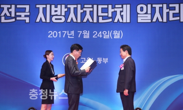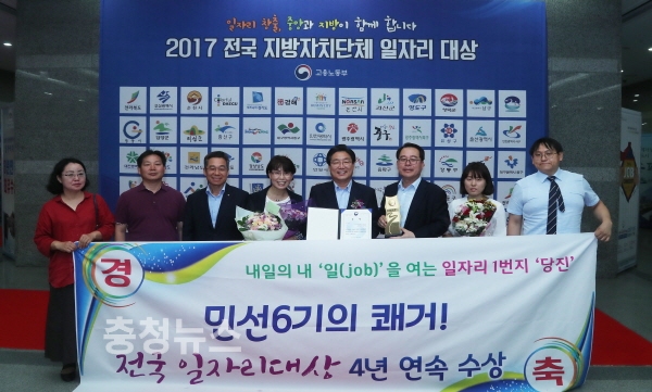 충남 당진시가 24일 중소기업중앙회 중소기업회관 그랜드홀에서 고용노동부 주관으로 열린 2017 전국 지방자치단체 일자리대상 시상식에서 우수상을 수상하며 시상금 9,000만 원을 확보했다.