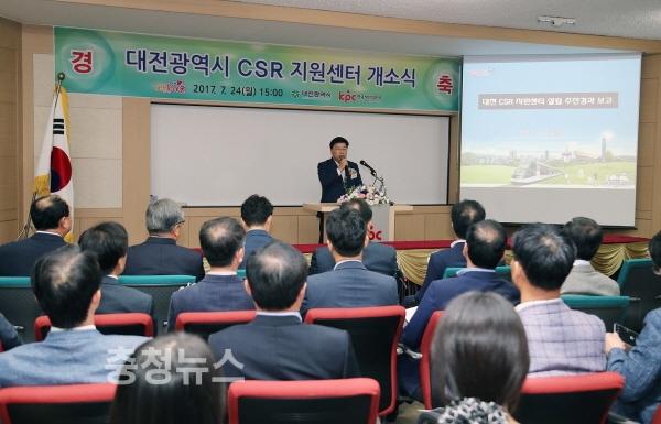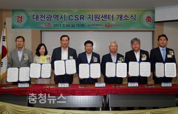 대전시는 24일 오후 3시 한국생산성본부 대전충청지역본부에서 ‘대전광역시 기업의 사회적 책임(CSR) 지원센터’ 개소식을 갖고 본격 운영에 들어갔다고 밝혔다.