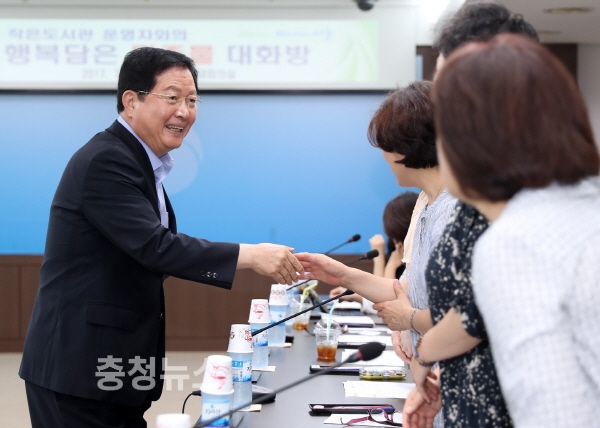 작은도서관 운영자와 행복담은 마중물 대화방 진행중인 장종태 서구청장