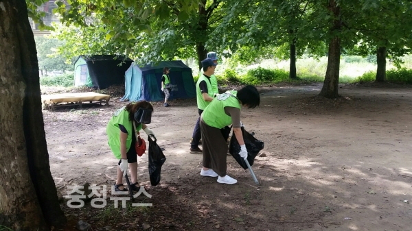 휴가철 유원지 환경정화 활동모습