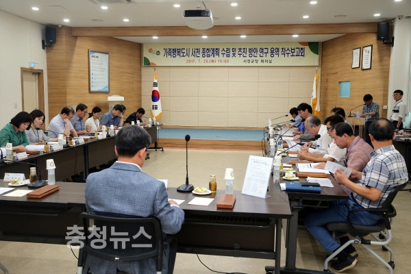 충남 서천군(군수 노박래)은 지난 25일 군청 대회의실에서 노박래 군수를 비롯한 실·과장 등 25여 명이 참석한 가운데 '가족행복도시 서천 종합계획 수립 및 추진방안 연구 용역 착수보고회‘를 개최했다.