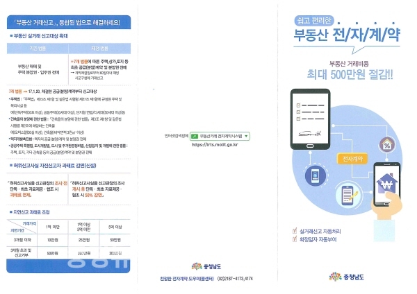 충남 천안시는 ‘쉽고 편리한 부동산 전자계약’ 안내문을 천안시 공인중개사사무소(동남구 487개, 서북구 878개 총 1,365개소)에 배부하고 적극 홍보에 나섰다.