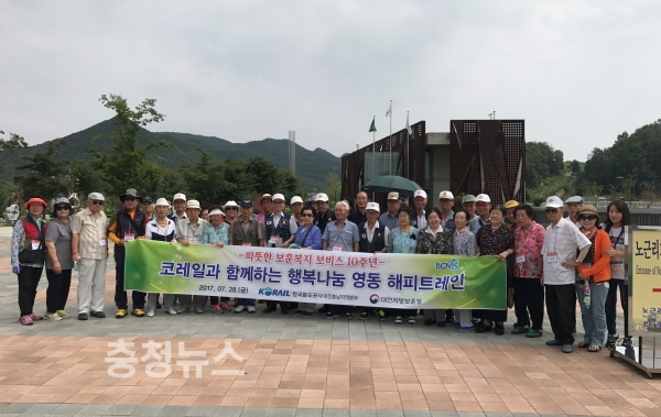 대전지방보훈청(청장 강윤진)은 28일 한국철도공사 대전충남지역본부(본부장 양운학)와 함께 대전지역 국가유공자 및 보훈가족 45명을 초청하여 ‘행복 나눔 영동 해피트레인’행사를 실시하였다.
