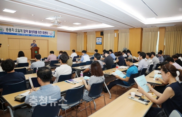 대전시는 28일 오후 시청 3층 세미나실에서 자치구 및 동주민센터 승용차요일제 담당자 90여 명이 참석한 가운데 '승용차요일제 활성화를 위한 토론회를 개최했다.