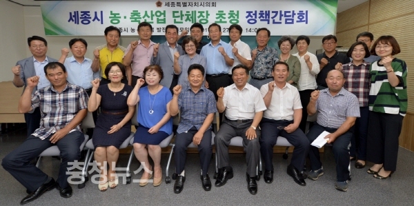 세종특별자치시의회(의장 고준일) '세종시 농·축산업 발전 연구모임'(대표의원 이충열)은 29일 의회 대회의실에서 농·축산업 단체장 및 관계공무원을 초청하여 세종시 농·축산업 발전을 위한 정책간담회를 개최했다.