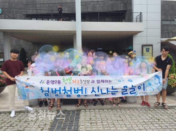 충남 아산시 온양2동 행복키움추진단(단장 강준구)은 지난 28일 여름방학을 맞아 취약계층 아동 20명과 함께 파라다이스스파도고에서‘온양2동 행복키움추진단과 함께하는 첨벙첨벙 신나는 물놀이’행사를 진행했다.