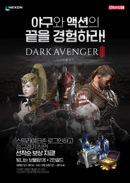 스크린야구 브랜드 스트라이크존을 운영하는 ㈜뉴딘콘텐츠(대표이사 김효겸)는 넥슨의 최신 모바일 게임 ‘다크어벤저3’와 제휴 이벤트를 진행한다고 1일 밝혔다.