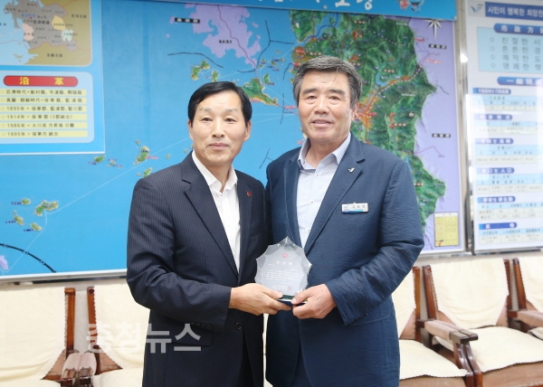 충남 보령시는 2일 시청에서 김동일 시장이 국민건강보험공단 보령서천지사 심우권 지사장으로부터 저소득·취약계층 보험료 지원 우수기관 선정에 따른 감사패를 받았다고 밝혔다.