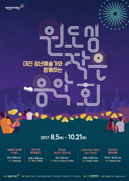 ‘원도심 작은음악회’ 는 전석 무료이며, 사업에 대한 자세한 내용은 대전문화재단 홈페이지, SNS(페이스북, 인스타그램) 원도심작은음악회 페이지 및 대전문화재단 시민문화지원팀을 통해 확인이 가능하다.