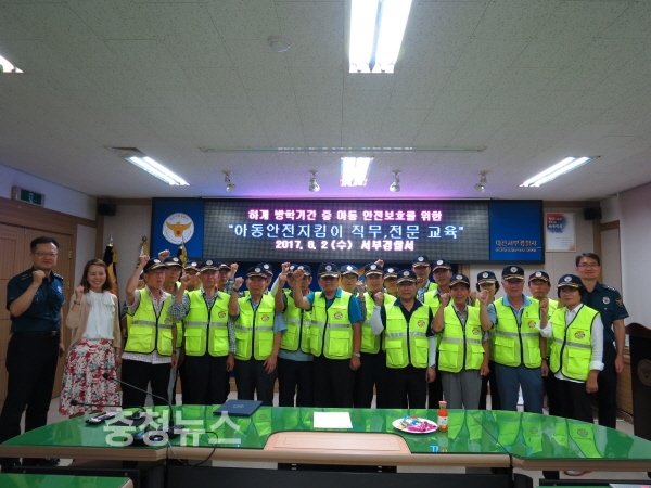 대전서부경찰서 여성청소년계(경감 이창우)는 2일 지역사회 안전망으로 활동중인 아동안전지킴이 23명에게 여름방학 중 안전사고 예방과 현장대응력 강화를 위한 직무교육, 성폭력센터에서 실시하는 성폭력 예방 전문교육을 실시했다.