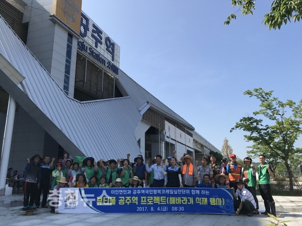 이인면 주민과 기관단체 회원들은 공주를 찾는 관광객들에게 쾌적한 환경을 제공하기 위해 매월 역 주변 꽃 관리, 제초작업, 쓰레기 줍기 등 환경정비를 실시하고 있다.