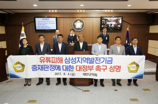태안군의회(의장 이용희)는 지난 4일, 제246회 임시회 본회의에서 유류피해 삼성지역발전기금 배분 중재판정에 대한 성명서를 채택했다.