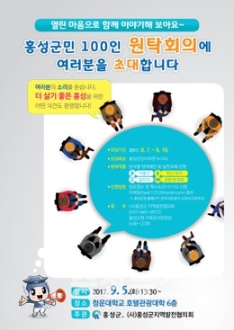 홍성군과 (사)홍성군지역발전협의회에서 공동 주관하는 원탁회의는 다음달 5일 오후 1시 30분부터 청운대학교 호텔관광대학 6층에서 개최된다.
