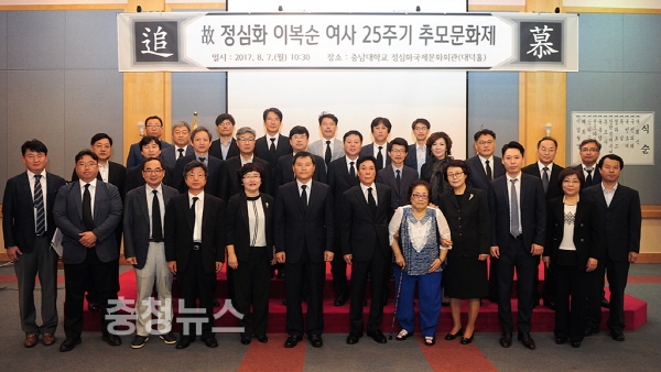 충남대는 7일 정심화국제문화회관 대덕홀에서 김밥 할머니로 유명한 故 정심화 이복순 여사의 25주기 추모문화제를 거행했다.