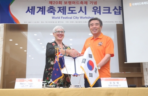 지난 달 22일 수출계약을 체결했던 로토루아 스티브 채드윅 시장(왼쪽)과 김동일 보령시장