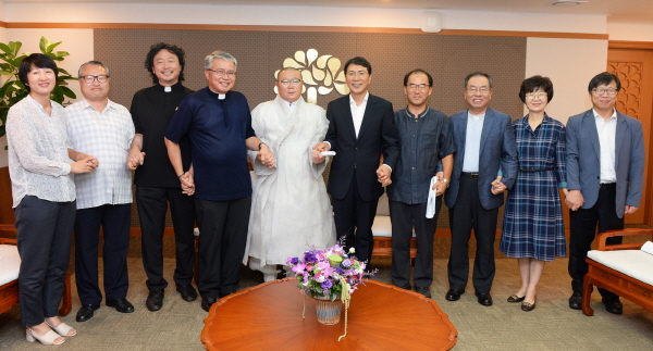 안희정 지사는 9일 도청 접견실에서 도내 종교계 지도자와 면담을 갖고 ‘충청남도 인권조례에 대한 지역사회 종교인 의견서’를 전달받았다.