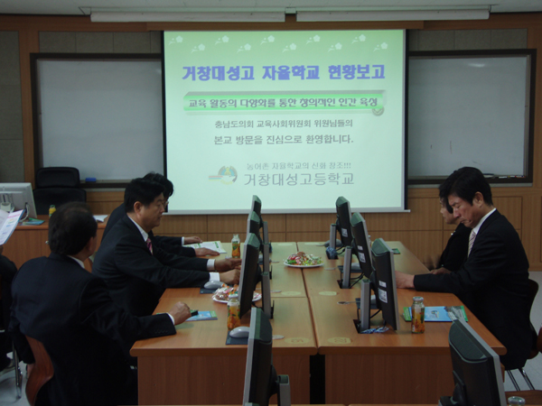 충청남도의회 교육사회위원회(위원장 차성남)은 제209회 임시회 기간 중 경남 교육행정의 선진지인 거창군의 3개교(거창고, 거창대성고, 거창여고)를 방문하여 평생학습센터 운영, 농촌지역 방과후학교 운영 등 농촌형 자립학교의 좋은 시책을 벤치마킹 했다.