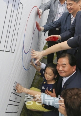 특히 손도장 태극기 8개는 행사 당일 원활한 진행을 위해 행사 전에 미리 관내 초등학교 학생들과 자생단체 회원들이 사전 릴레이 형식으로 완성해 행사장에 설치했고, 2개는 행사 당일 현장에 참여한 내빈들과 지역 주민들이 완성했으며, 총 10개의 태극기를 배경으로 참여자 전원이 플래시몹을 실시하는 장관을 연출했다.