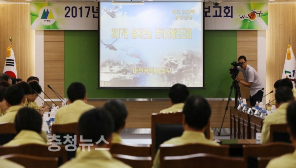 대전 동구(구청장 한현택)는 열흘 앞으로 다가온 2017년 을지연습의 전반적인 준비상태를 점검하기 위해 10일 구청 중회의실에서 준비상황보고회를 개최했다.