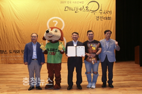 충남 천안시가 한국매니페스토실천본부(사무총장 이광재)가 주최한 2017 전국 기초단체장 매니페스토 우수사례 경진 대회에서 청년문제해소 분야 최우수상을 받았다.
