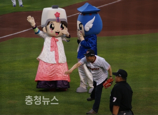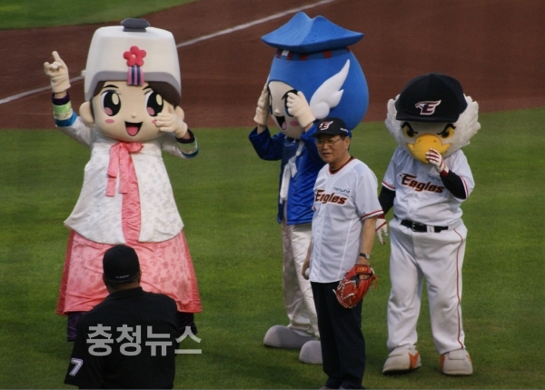 김석환 홍성군수가 11일 대전 한화생명이글스파크에서 열리는 프로야구 한화 이글스 홈경기 시구자로 나섰다.