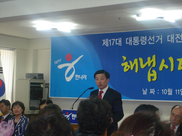 한편 한나라당 대전시당(위원장 이재선) 11일 오후 17대 대통령선거 앞두고 대전시당 선대위 발대식을 개최하고 선거체제로 돌입했다.