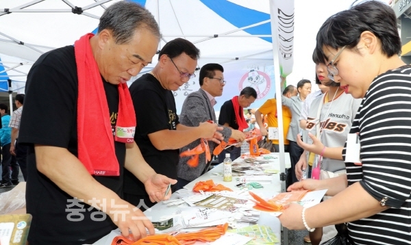 김덕배 의장과 박만 부의장, 이병국, 황현동 의원은 홍성역사인물축제 로고가 새겨진 응원막대와 홍주천년 부채를 나눠주며 지역의 주요 행사와 축제에 대해 홍보활동을 펼쳤다.