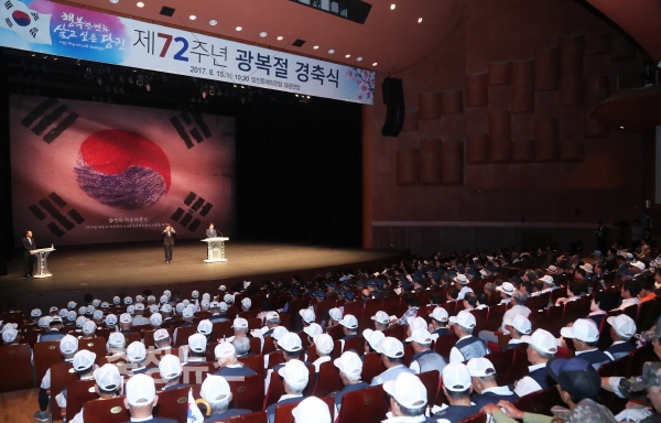 이날 경축행사는 김홍장 시장과 이종윤 시의회 의장을 비롯한 기관단체장과 광복회원 및 보훈단체 회원, 학생과 시민 등 1,000여 명이 참석한 가운데 엄숙한 분위기 속에 진행됐다.