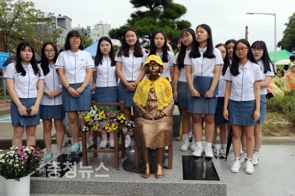 홍성군의회 김덕배 의장은 제72회 광복절인 15일 평화의 소녀상 제막식에 참석해 일본군 위안부의 아픈 역사를 결코 잊지 않겠다며 일본 정부의 사죄와 조속한 문제해결을 촉구했다.