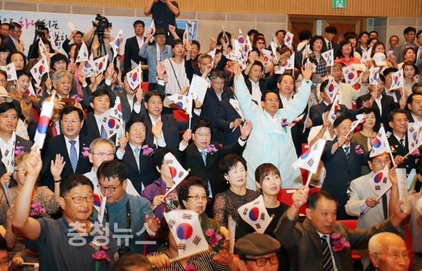 대전시는 15일 오전 10시 시청 대강당에서 광복회원과 주요 기관·단체장, 시민 등 700여 명이 참석한 가운데 제72주년 광복절 경축행사를 개최했다.