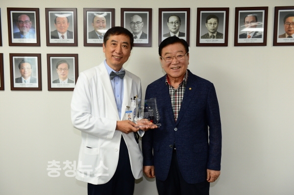 김석환 홍성군수는 17일 인제대학교 서울백병원을 방문해 지속적으로 홍성군민들에게 의료서비스를 제공해온 병원장(염호기)과 의료봉사단 팀장(박민구 교수)에게 감사패를 전달했다.