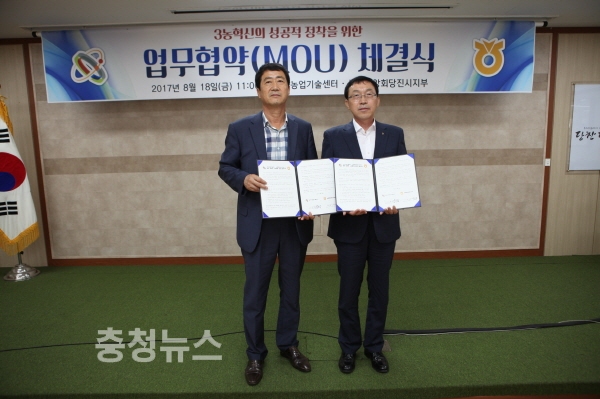충남 당진시농업기술센터(소장 김충남)와 농협중앙회당진시지부(지부장 이석우)가 당진형 3농혁신과 농업 6차산업화에 앞장서기 위해 손을 잡았다.